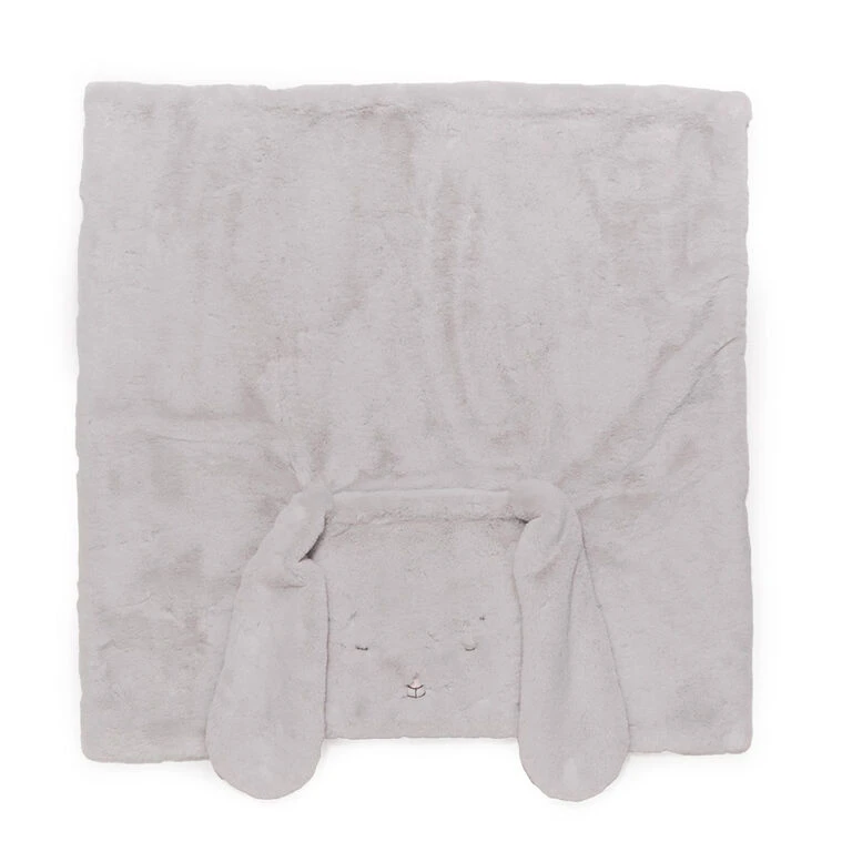 - Tuck me in gray blanket from Bunnies By The Bay features embroidered bunny faces, plush ears and pocket.