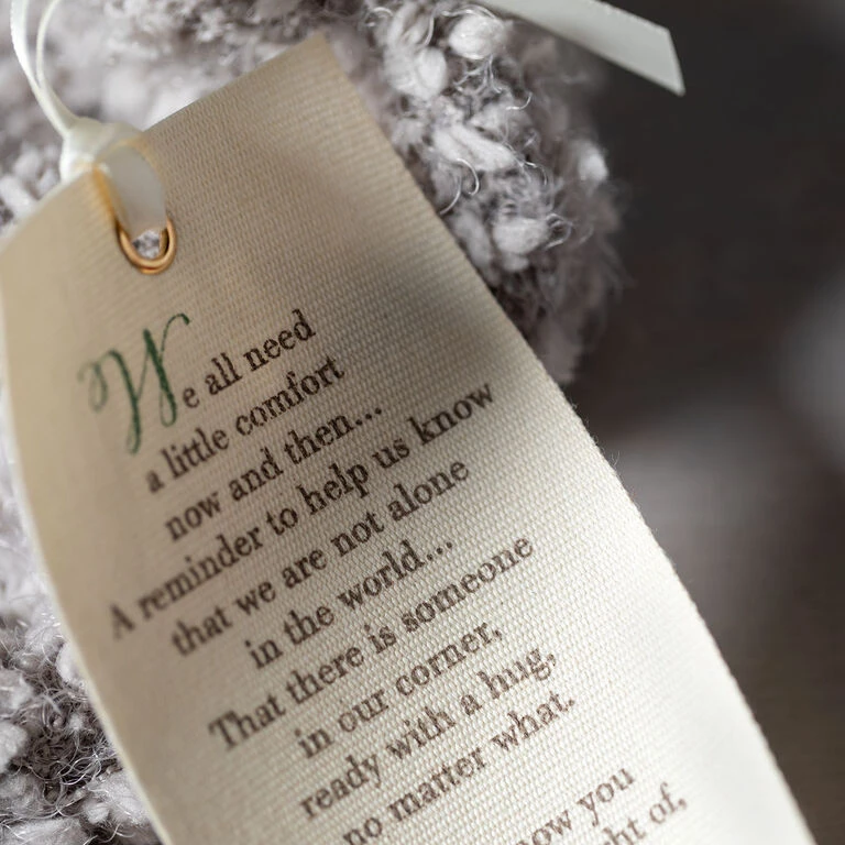 - Packaging sentiment: We all need a little comfort now and then… A reminder to help us know that we are not alone in the world… That there is someone in our corner, ready with a hug, no matter what. Always know you are being thought of, cheered on, and loved for exactly who you are—someone who has made this world a better place by being you.