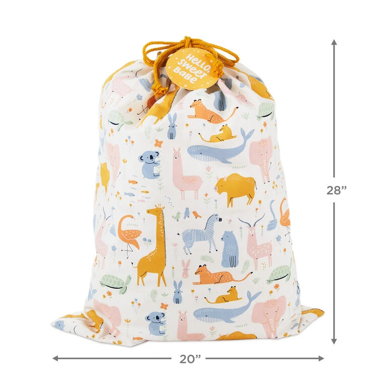 Hallmark 28″ Pastel Animals Large Fabric Gift Bag With Tag