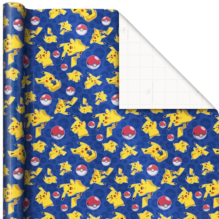 Share gifts in colorful style with this three-pack of Pokémon wrapping paper. Each Pokémon gift wrap roll features Pikachu and other favorite characters like Squirtle, Meowth, Bulbasaur, Jigglypuff, Slowpoke and more. This trio of wrapping paper rolls is perfect for birthdays, graduations, holidays or any special occasion. Each premium paper roll includes a cutting grid on reverse to ensure straight lines.