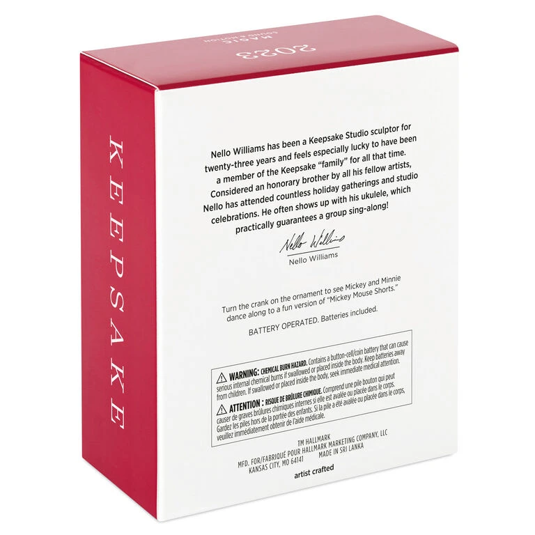 - Key Features: Turn the crank on the Magic Sound and Motion ornament to see Mickey and Minnie dance along to a fun version of āMickey Mouse Shorts.ā