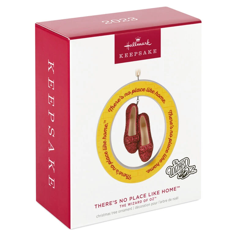 Anyone who has dreamed of skipping along the Yellow Brick Road will adore this elegant porcelain Christmas tree ornament. A sparkling pair of Ruby Slippers hangs in the center of a yellow circle with an embossed brick pattern and the classic phrase “There’s no place like home.” Fans of the movie “The Wizard of Oz” will love displaying this premium decoration all through the holiday season and for years to come.